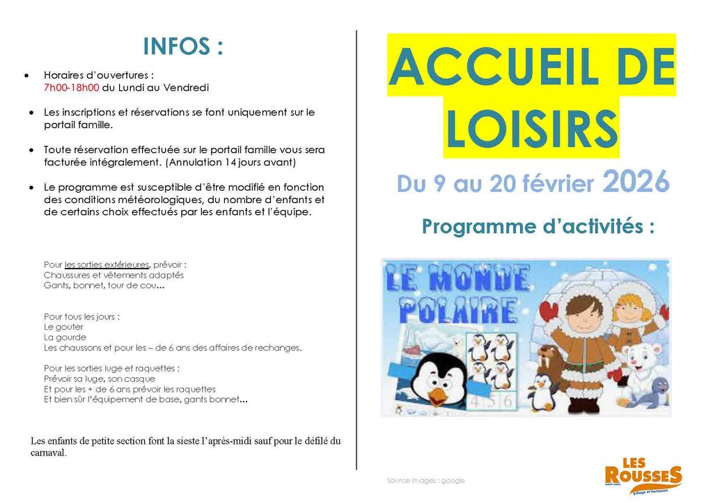 ALSH - PROGRAMME DES ACTIVITÉS DES VACANCES DE FÉVRIER