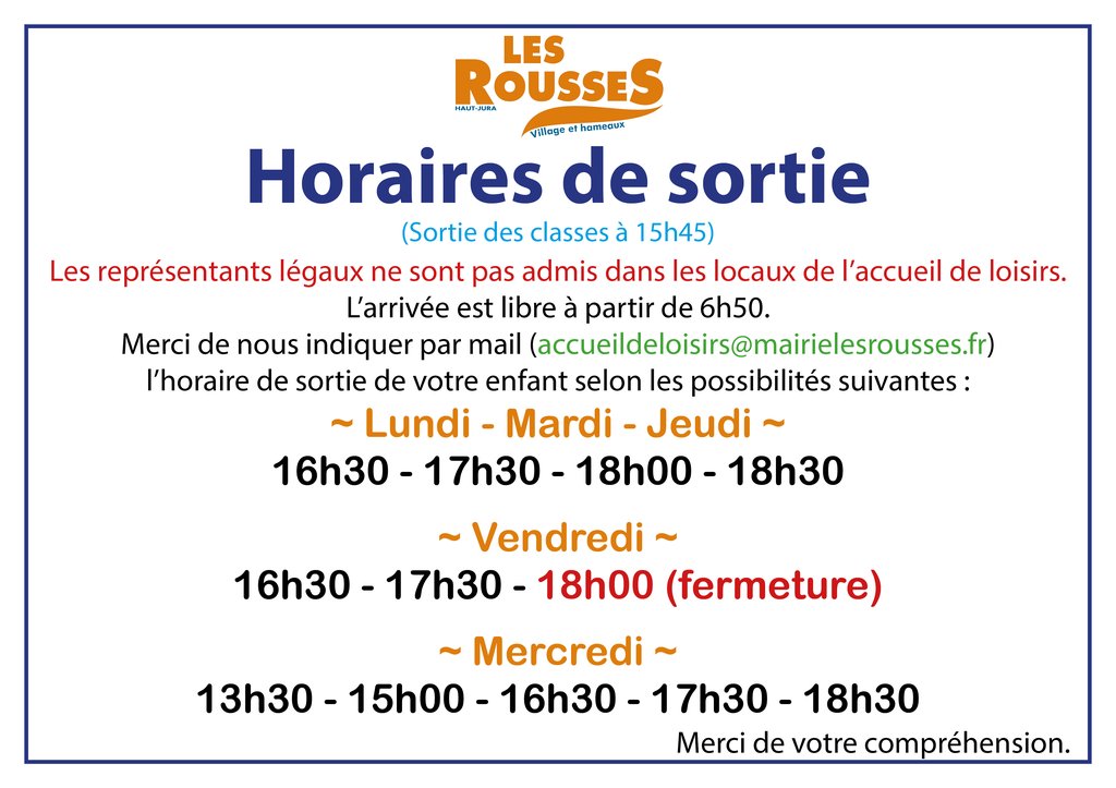 De 6h50 à 18h30 du lundi au jeudi et de 6h50 à 18h00 le vendredi. (sauf vacances scolaires).